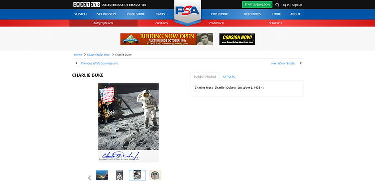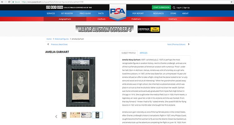 Our collecting skills and authentication standards are so highly regarded, many of the autographs we have sold right here on this this site, and are currently being sold, are used as exemplars for PSA/DNA's website. These images are meant to help potential buyers across the world compare signatures from verified exemplars they have compiled. These exemplars are considered some of the industries best signatures, considering PSA has seen over 30 million signatures since it first opened. Many of these verified examples happen to come directly from our collection.